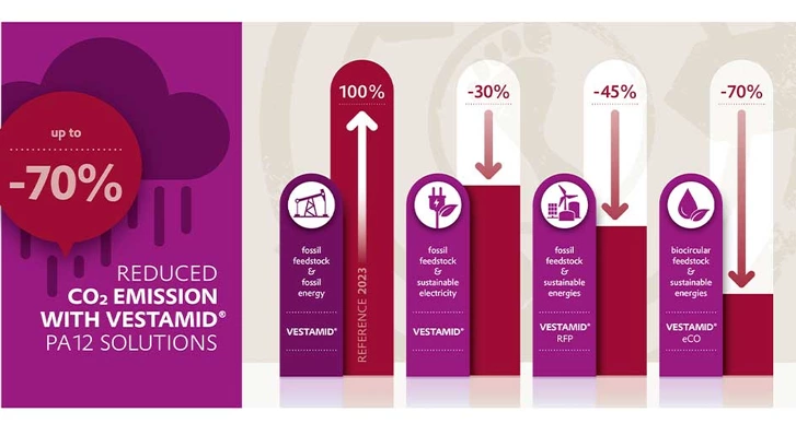 As a complement to the overall transition to using more renewable energy, we go a step further with VESTAMID® RFP products. Using the green power and further harnessing biomethane from waste to generate steam and heat, we can further reduce CO2 emissions by an additional 15% from our products today. In addition to its lower carbon footprint, our VESTAMID® RFP products retain the exact same high-quality properties of our standard VESTAMID® product range.